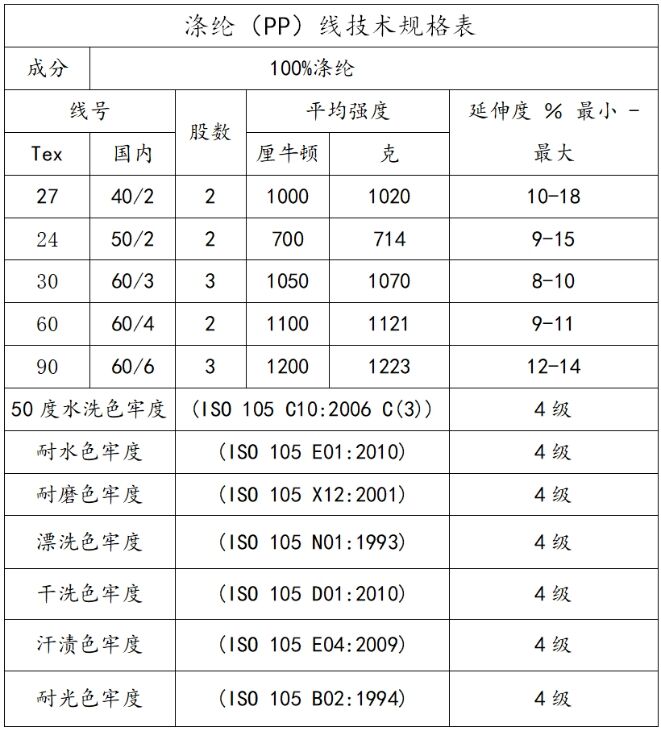 由于不同的条件和运作会对缝纫线的应用存在很大的差异,用户应预先测试该缝纫线以确保用途是否合适。以上是基于目前的平均值而得出的技术性资料,应只作为参考。